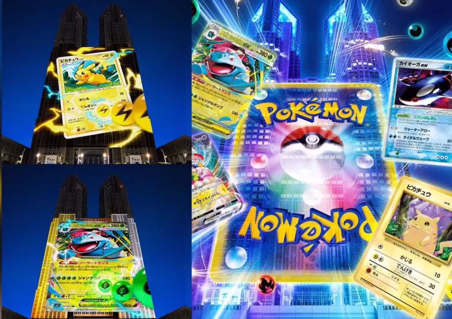 Durante la intervención, cartas del juego fueron proyectadas sobre la fachada del edificio del Gobierno Metropolitano de Tokio en una secuencia animada que combinó distintas etapas del Pokémon TCG. Entre las apariciones más reconocibles estuvieron el Pikachu clásico y Umbreon en una ambientación nocturna, en un recorrido que mezcla elementos históricos con diseños más recientes.