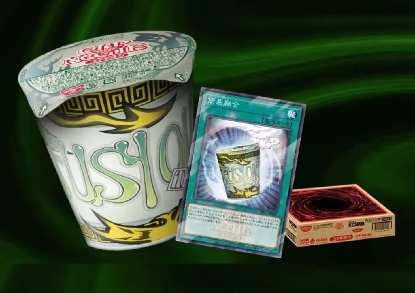 Dentro del juego de cartas, Instant Fusion es una carta de hechizo de juego rápido que permite invocar un monstruo de fusión pagando puntos de vida. Con el tiempo, su arte se volvió especialmente reconocible por ese pequeño pero llamativo detalle del vaso de noodles.